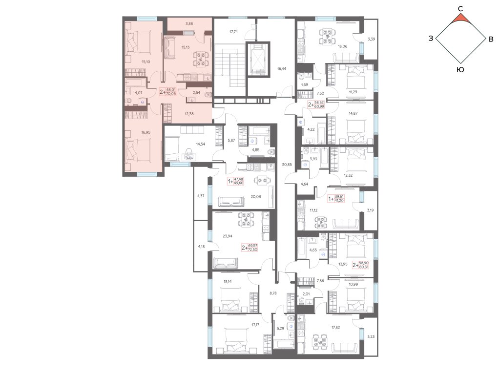 2-комнатная  70.3 м2