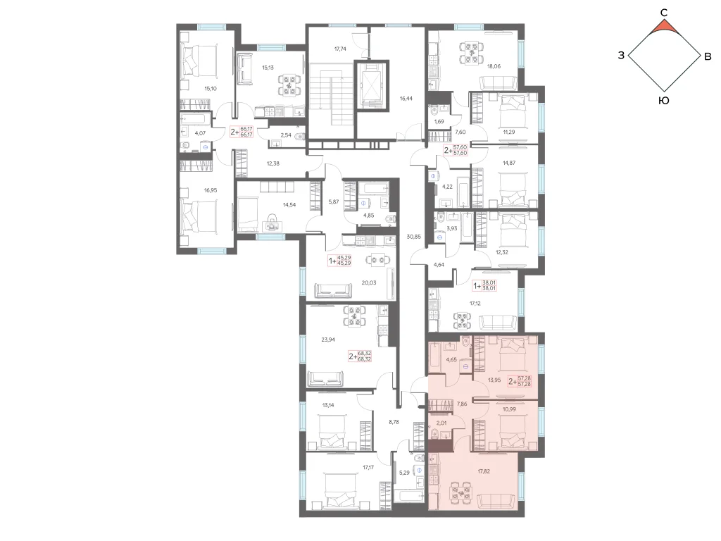 2-комнатная 58.5 м2